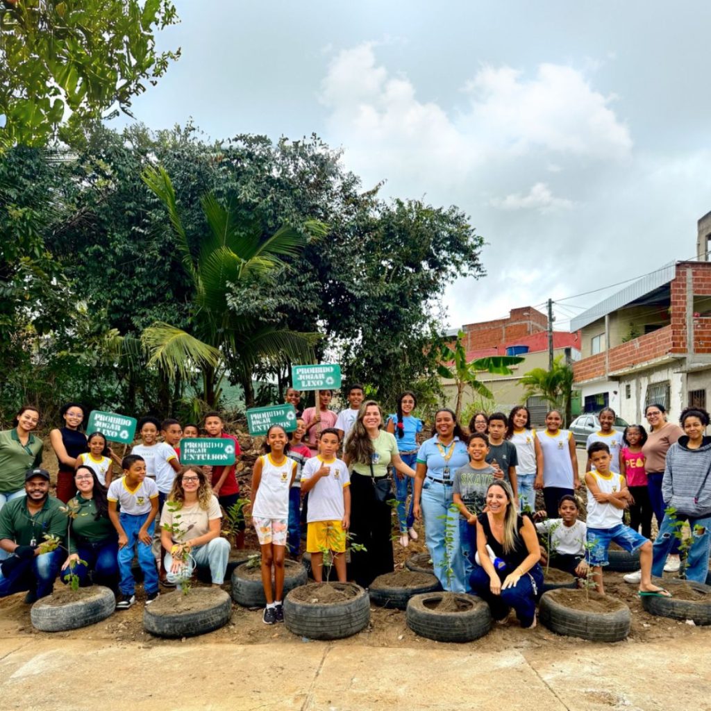 Após a palestra, colaboradores Biosanear realizaram a limpeza de uma área degradada e utilizada como ponto de descarte irregular de lixo em frente à escola. Em seguida, os estudantes participaram do plantio de 20 mudas de árvores frutíferas, uma iniciativa voltada à recuperação do espaço e ao estímulo ao cuidado ambiental.